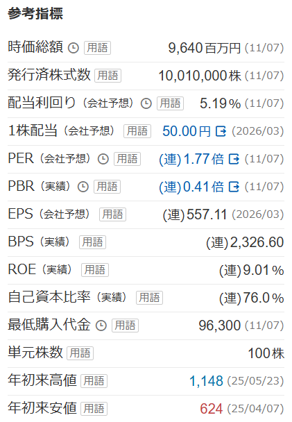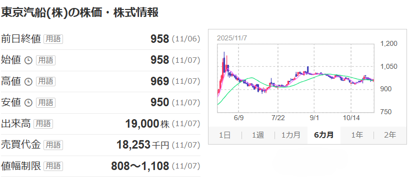 東京汽船の11月7日に出されている指標は次のとおりで、