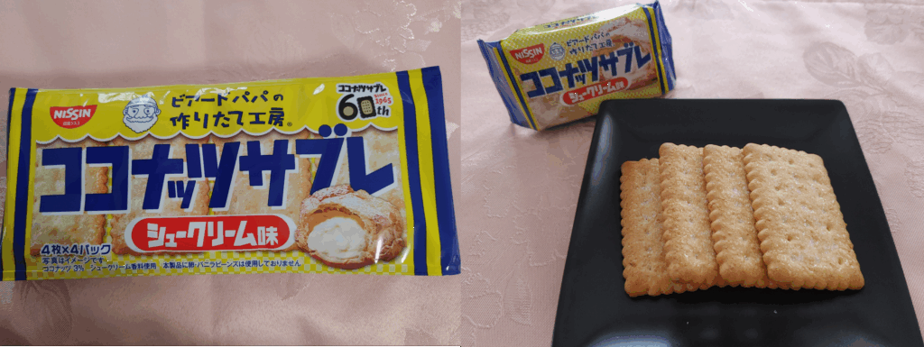 日清シスコ “ココナッツサブレ シュークリーム味” ビアードパパとのコラボらしい。