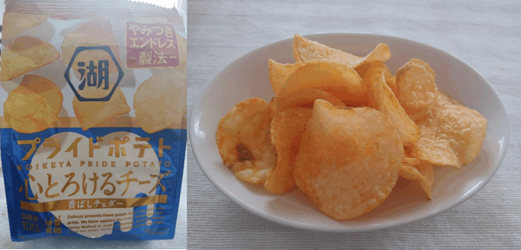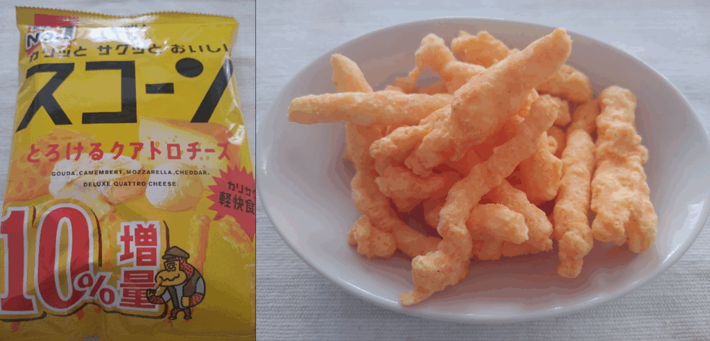 今日は湖池屋スナックのこの二つのチーズ味を食べ比べました。