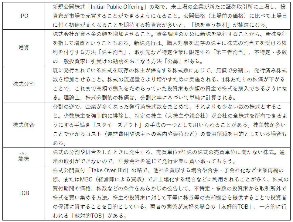 今回も株式取引で使われる用語のいくつかを簡単に説明します