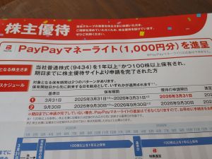 しかし、廃品回収用にと別にしておいたチラシを見ると「株主優待|PayPayマネーライト(1,000円分)を進呈」の文字が!