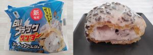 表面にホワイトチョコとココアクッキー、中はバニラクリームとクランチで、ザクザク食感が楽しくボリュームも満点です。見るからに甘そうですが、そこまで甘々では無かったです。